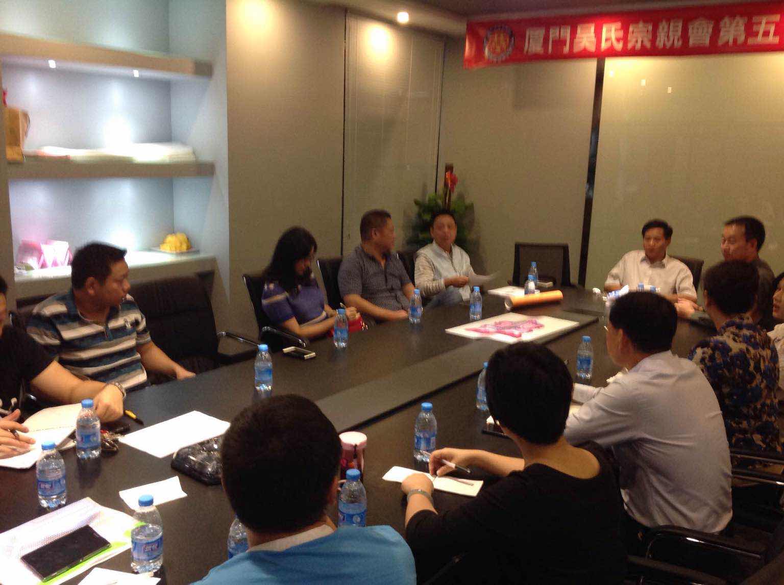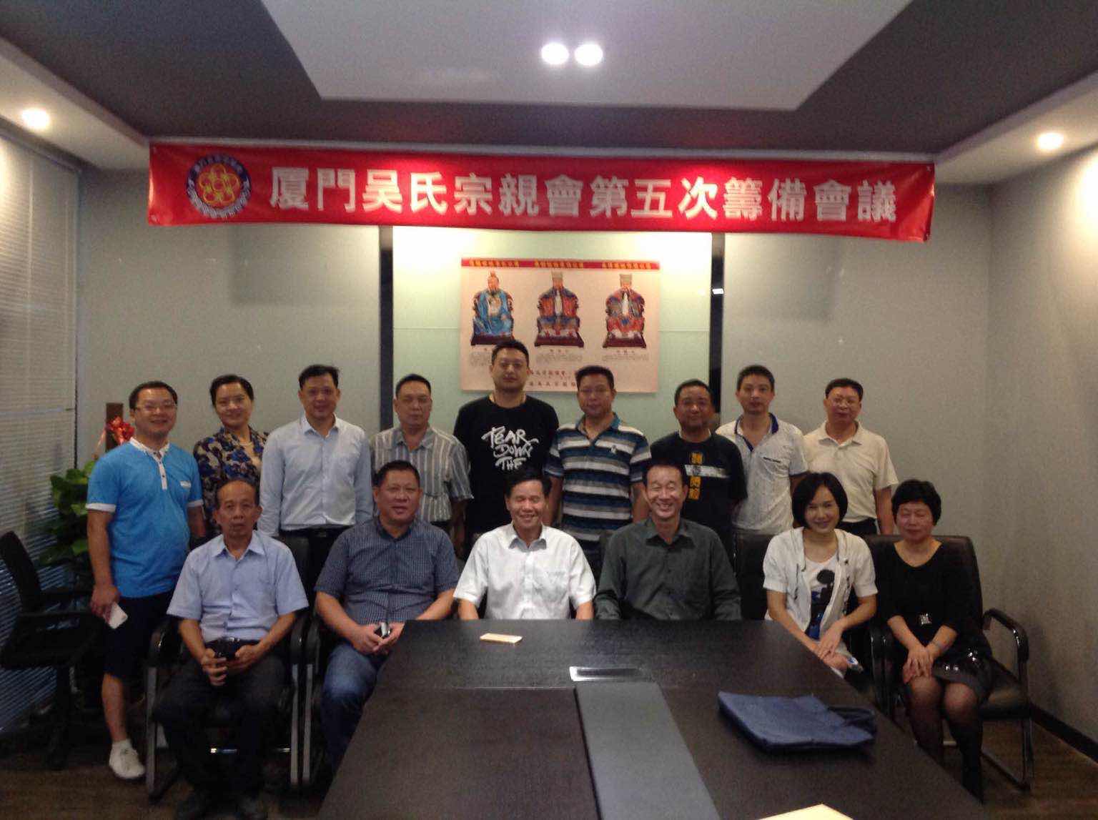 今天上午9时在厦门鑫龙大厦(厦门吴氏宗亲会办公处)召开厦门吴氏宗亲会第五次筹备会,会议圆满结束!本次会议议题主要对10月25日成立厦门吴氏宗亲大会前期各项工作的进度情况进行审核。会议由吴小日主持。各位宗亲分别对前期各自的工作作出了说明和进展汇报。宗亲会成立大会工作准备就绪,预祝厦门吴氏宗亲会成立大会顺利召开!
